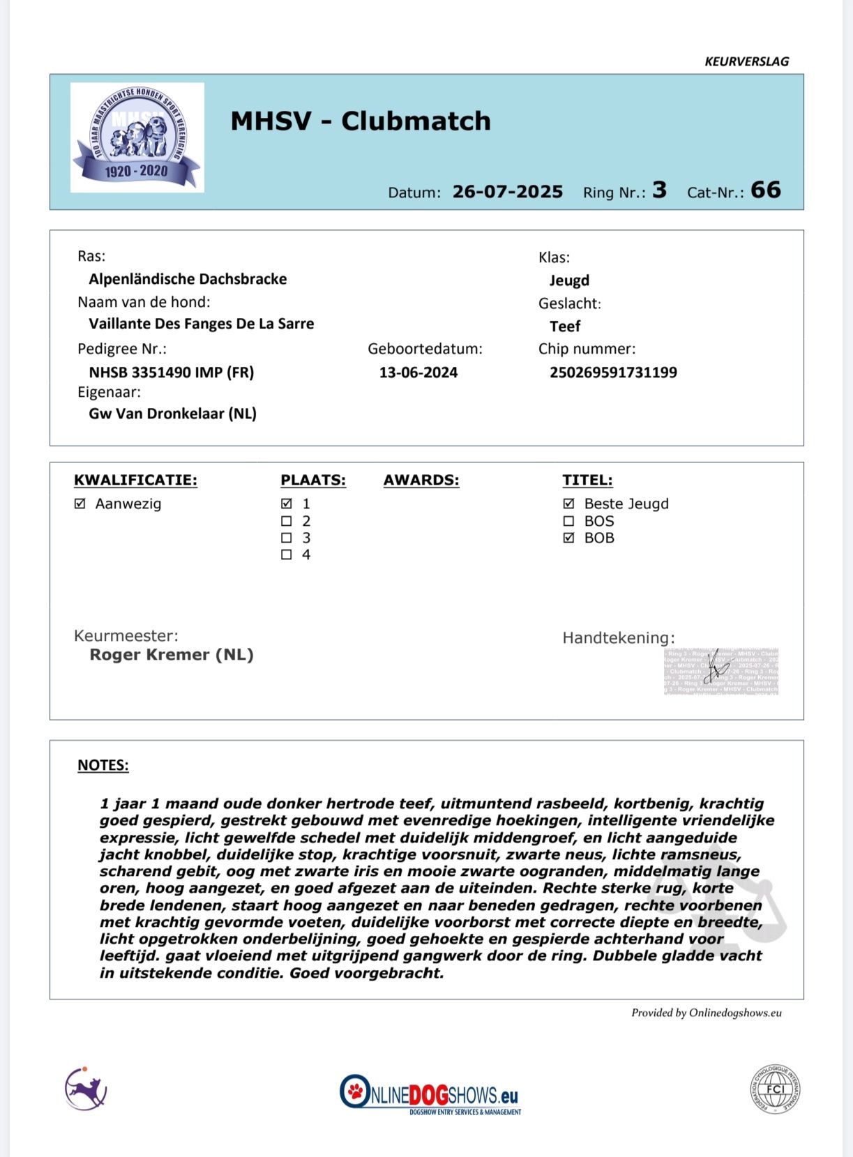Helaas niet de BIS ( Best in Show) geworden, maar de concurrentie was groot en zoals de keurmeester zei: een mooie 3e plaats.